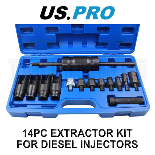 US PRO Tools 14pc Injector Extractor + Common Rail Adaptor Bosch Delphi