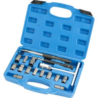 A 35 piece Master kit containing the tools required for the maintenance of diesel injector seats, injector ports and shafts. It includes seat cutters, port reamer, guides, sleeves, seal ring extractor, stoppers, T Bar, cleaning brushes and adapters.