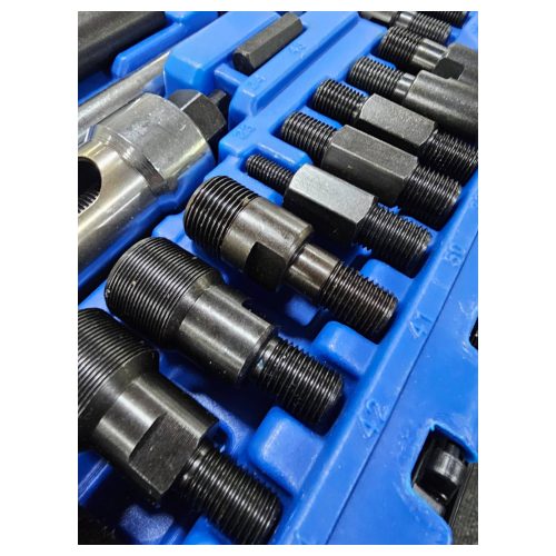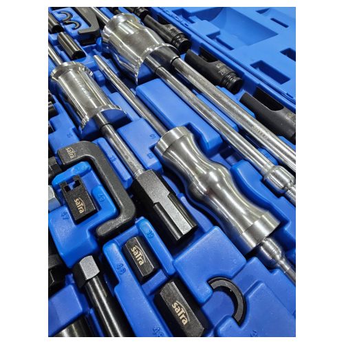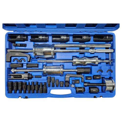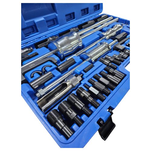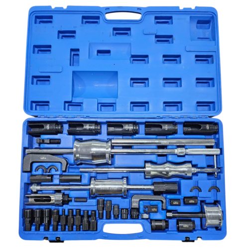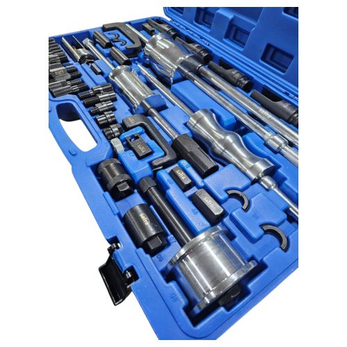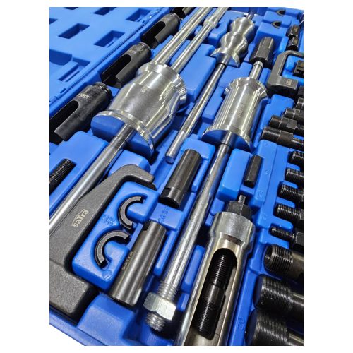 An extractor set suitable for most diesel injectors due to the large range of adapters, sockets and pullers included.
