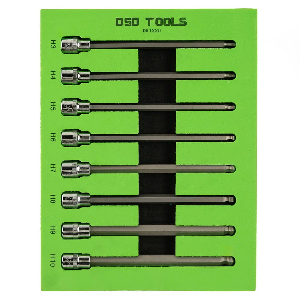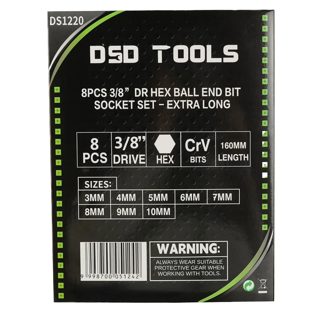8pcs 3/8 DR Hex Ball End Bit Socket Set – Extra Long