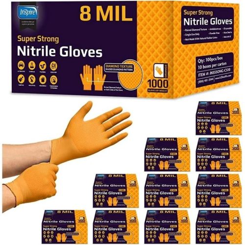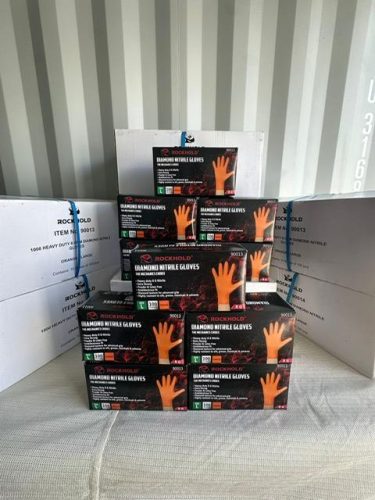 ROCKHOLD HEAVY DUTY ORANGE 8 MIL NITRILE DIAMOND GRIP GLOVES LARGE – 1000 GLOVES FULL BOX OF 10 PACKS OF 100pcs