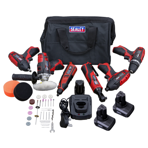 Sealey SV12 Series 6 x 12V Cordless Power Tool Kit – 3 Batteries