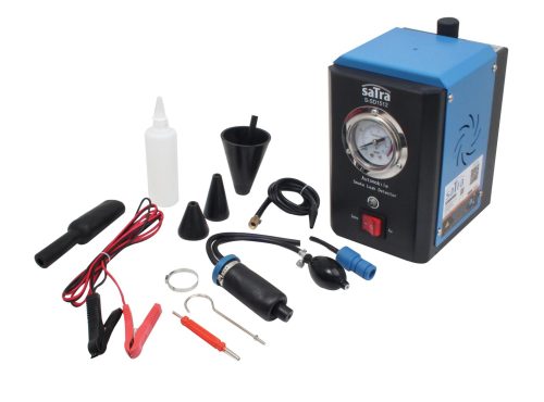 Device that tests the tightness of various systems by means of smoke. With the help of smoke, it will be possible to detect leaks that will cause, for example, a loss of engine power. Designed wherever it is necessary to check the tightness of systems, e.g. fuel lines, intake systems, tanks, etc., widely used in the automotive and industrial sectors. An easy-to-use tool filled with ordinary oil will facilitate and speed up work when detecting a leak.