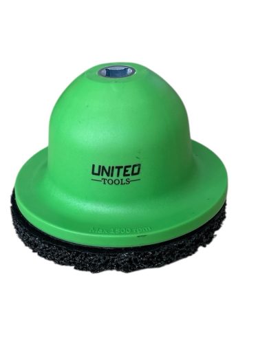 Features a composite body, metal 1/2″D insert, together with a hook & loop abrasive pad fixing.