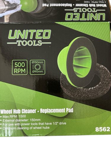A wheel hub cleaning tool, designed for use on studless hubs, to remove corrosion and dirt from the mating surface on both the hub and the inside of the wheel, in preparation of refitting the wheels to the vehicle. It features a 1/2″ square drive, enabling it to be fitted to the same impact wrench/air gun that was used to remove the wheel nuts (only requires light contact pressure for best results). It has an external diameter of 150mm, and an internal diameter of 90mm, and features a replaceable abrasive pad (available separately, Part No. 6286).